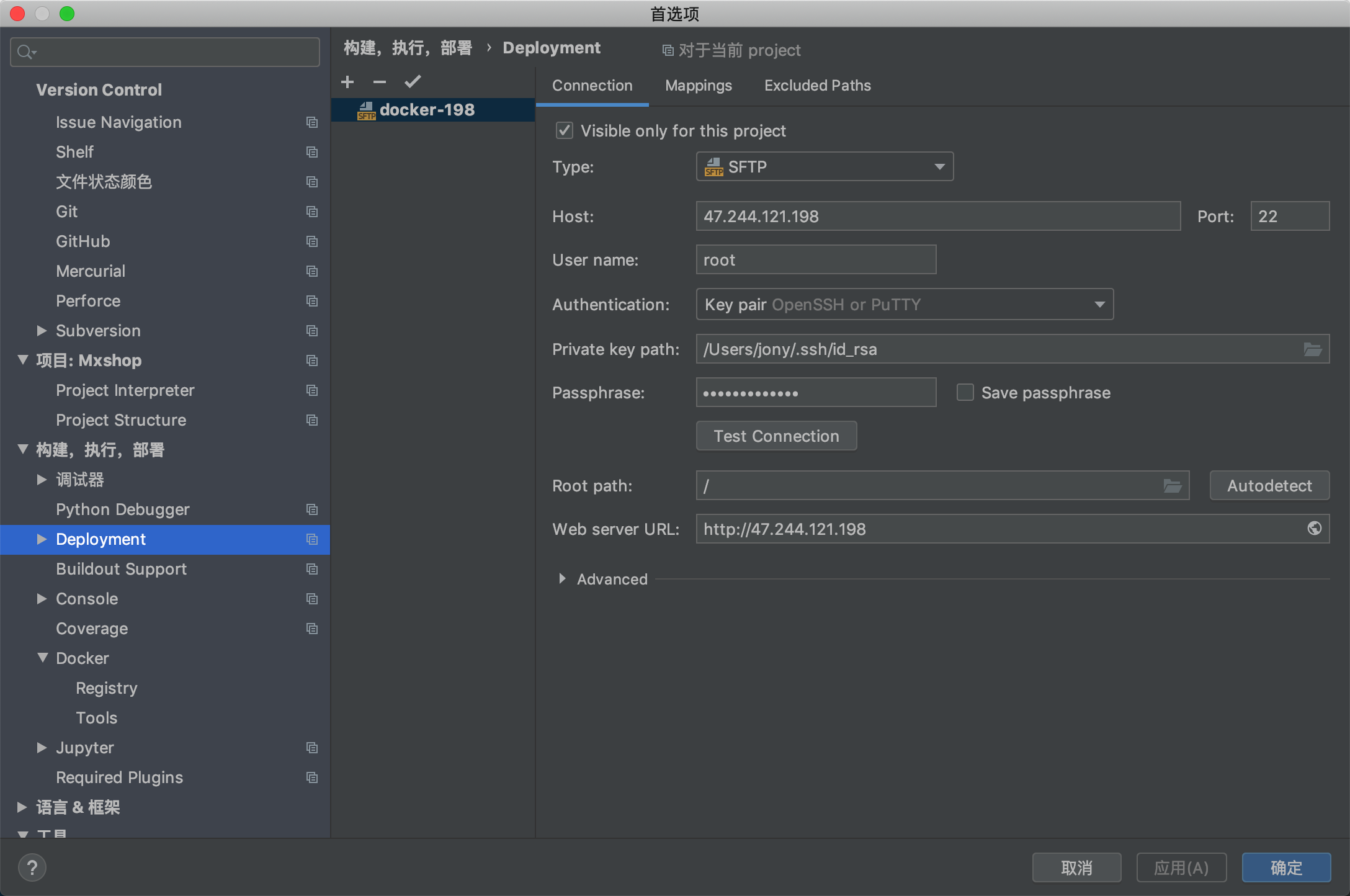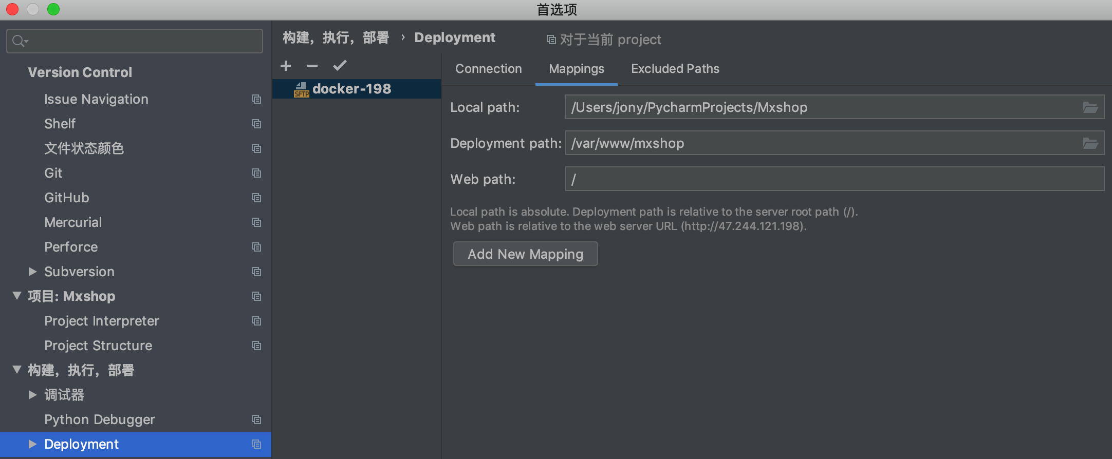 目录映射,一定要弄对,把本机的目录对应到远程服务器的哪个路径。