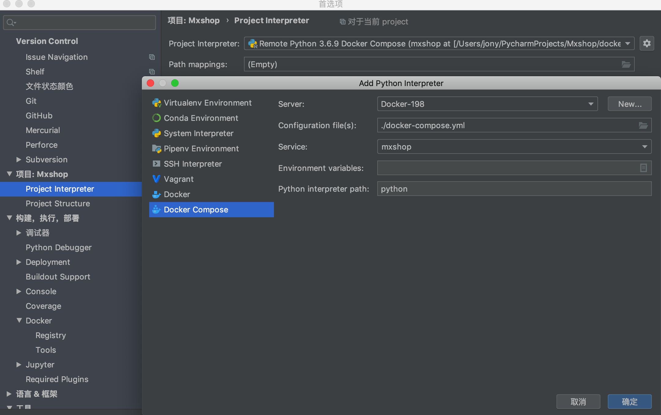 参考 https://www.jetbrains.com/help/pycharm/using-docker-compose-as-a-remote-interpreter.html